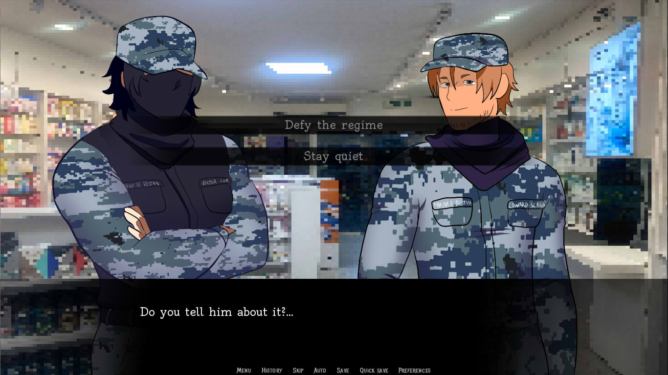 Heterolatus is a visual novel set in the present day, in a fictional country called Restan, a nation under a totalitarian regime and a military dictatorship that controls every aspect of everyday life. Featuring a female protagonist,
